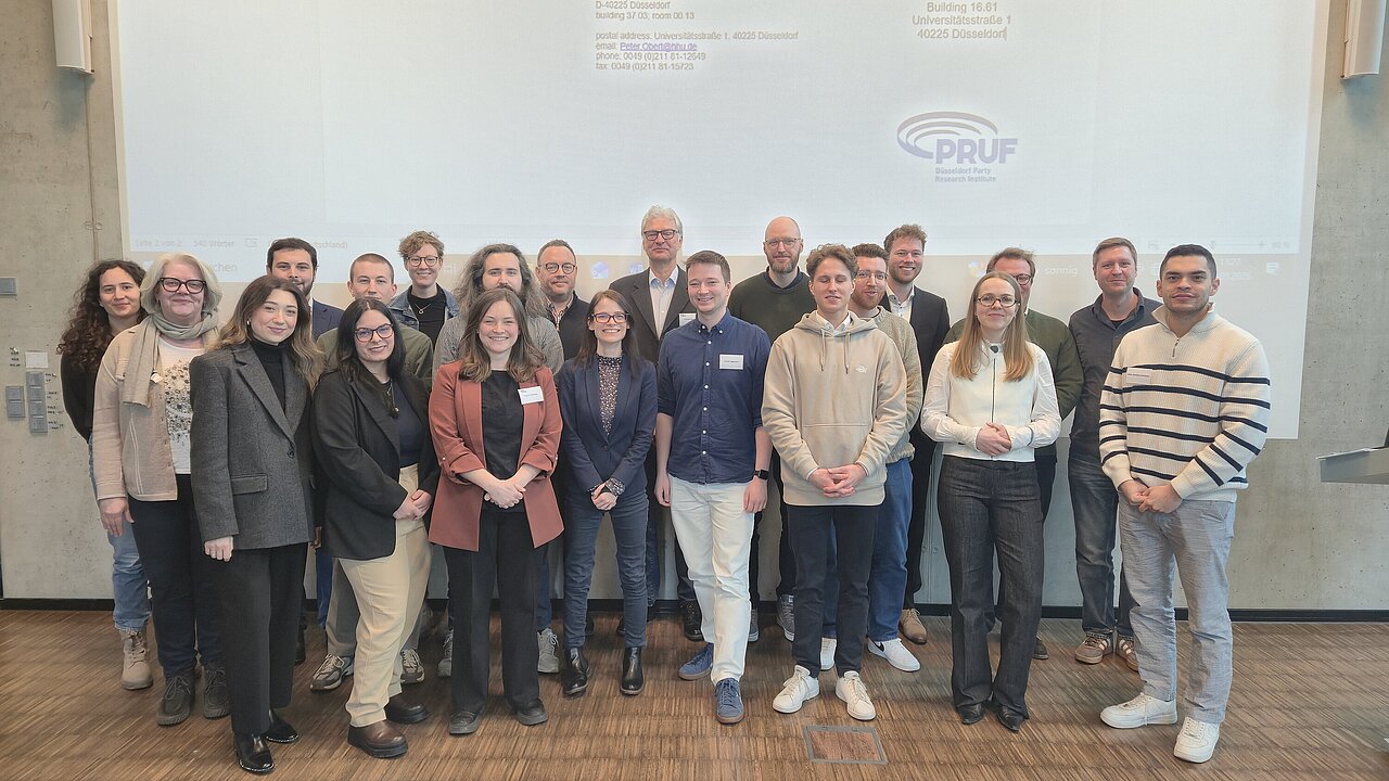 Am 29. und 30. Januar richtete das PRUF die 17. Düsseldorfer Graduiertenkonferenz Parteienwissenschaften (GraPa) aus. Die interdisziplinäre Veranstaltung bot Promovierenden aus dem In- und Ausland ein Forum, um ihre aktuellen Forschungsprojekte und -vorhaben vorzustellen und kritisch zu diskutieren. In thematisch vielfältigen Panels befassten sich die Beiträge unter anderem mit Fragen politischer Repräsentation, Aspekten der Verfassungs- und Regierungspolitik sowie mit Parteiorganisation und innerparteilichen Dynamiken. Die Konferenz zeichnete sich durch einen intensiven fachlichen Austausch aus und ermöglichte den Teilnehmenden zugleich, neue Impulse für ihre wissenschaftliche Arbeit zu gewinnen und Kontakte für zukünftige Kooperationen zu knüpfen.
