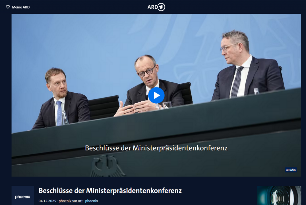 Das Gespräch über die Pressekonferenz von Bundeskanzler Merz und den Ministerpräsidenten Alexander Schweitzer und Michael Kretschmer sehen Sie hier (ab Min. 35:38).